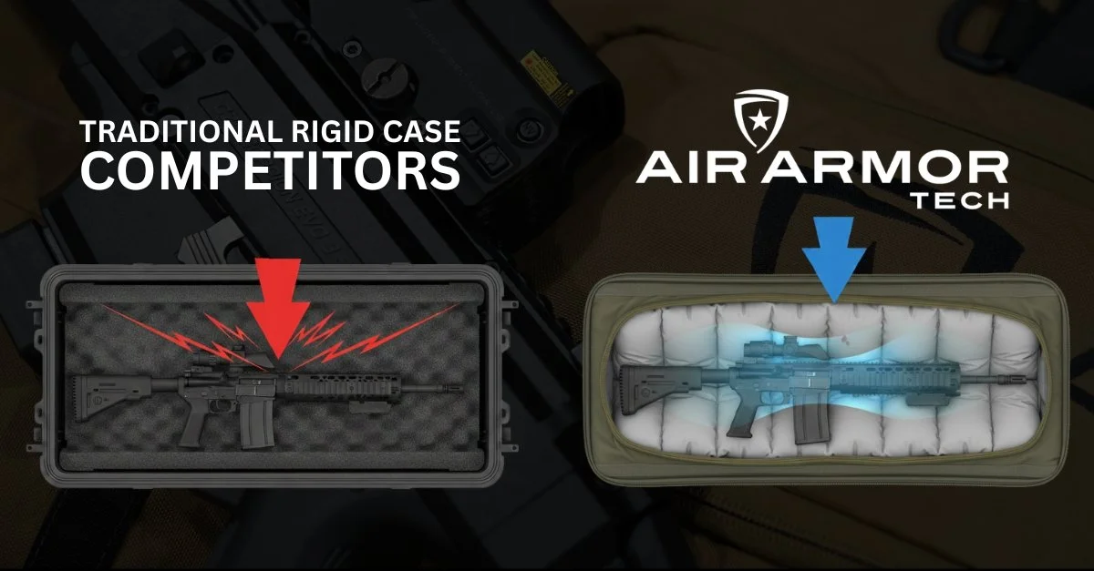 Air Armor Tech approaches this challenge from an energy-dissipation perspective. Inflatable air-cell systems are engineered to compress under load, slowing the rate of deceleration during impact and reducing peak force transfer. Unlike rigid materials that primarily reflect energy, air cells distribute and absorb force across a broader surface area. The goal is not simply to prevent visible damage to the case, but to reduce the amount of shock that reaches the firearm or optic in the first place.
